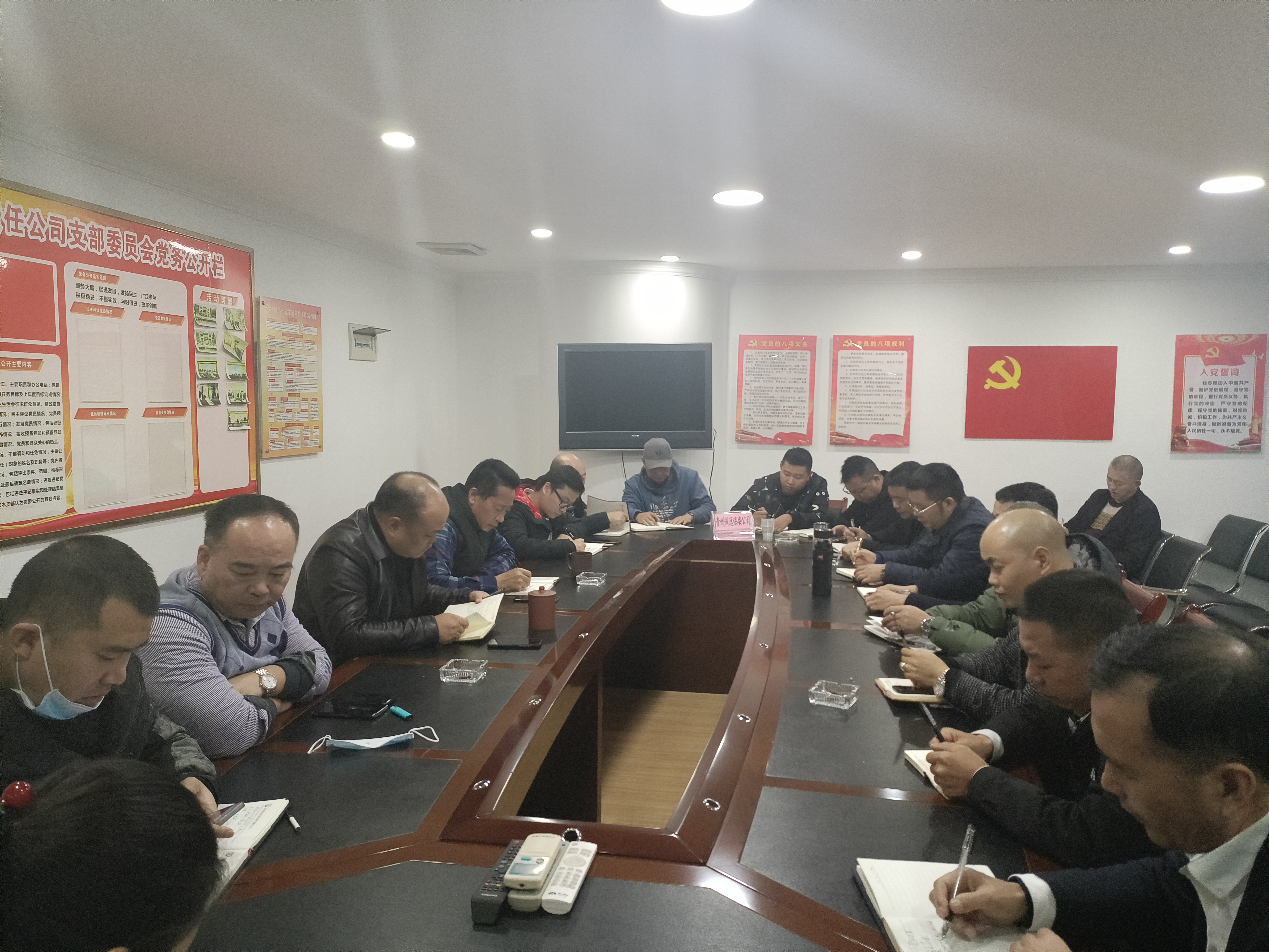 (党支部书记罗新勇主持会议(前排左三))