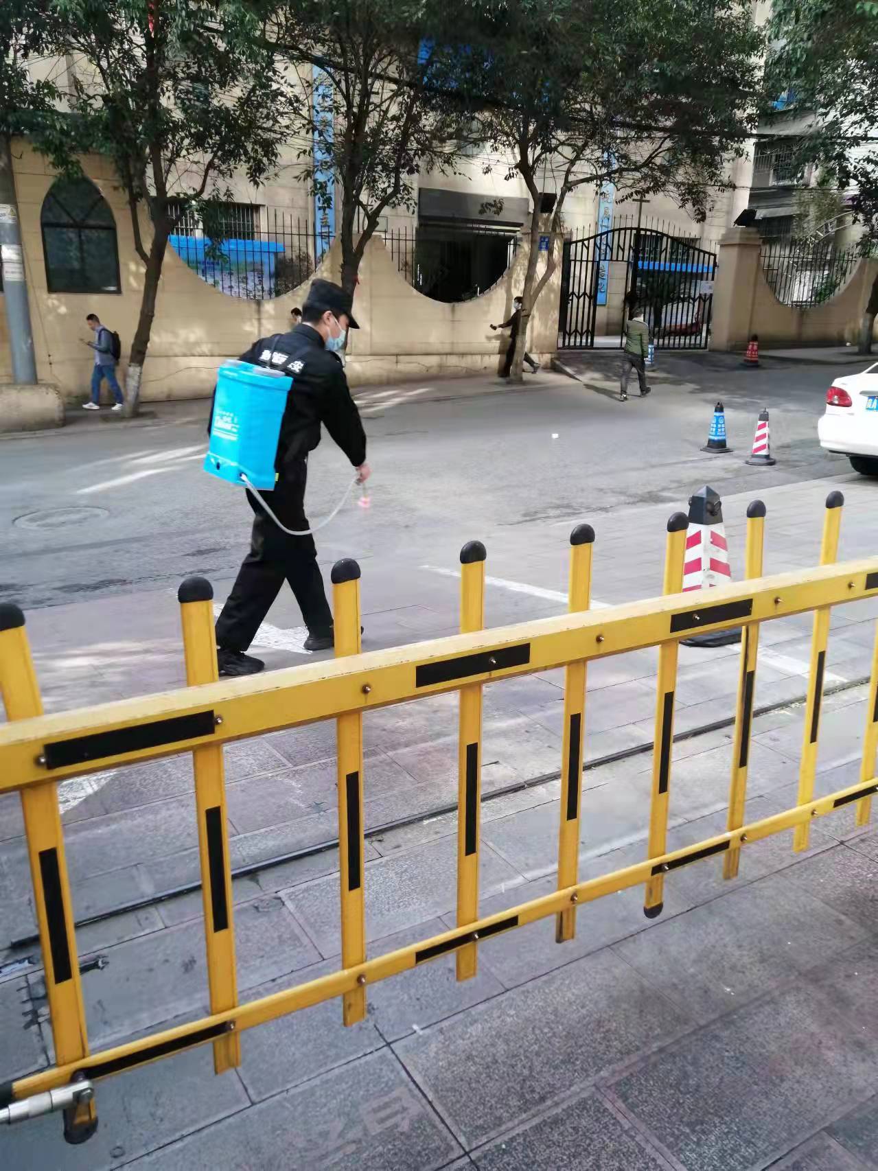 首先,各驻点员工需科学佩戴口罩,对驻点及周边区域定期进行喷洒消毒。