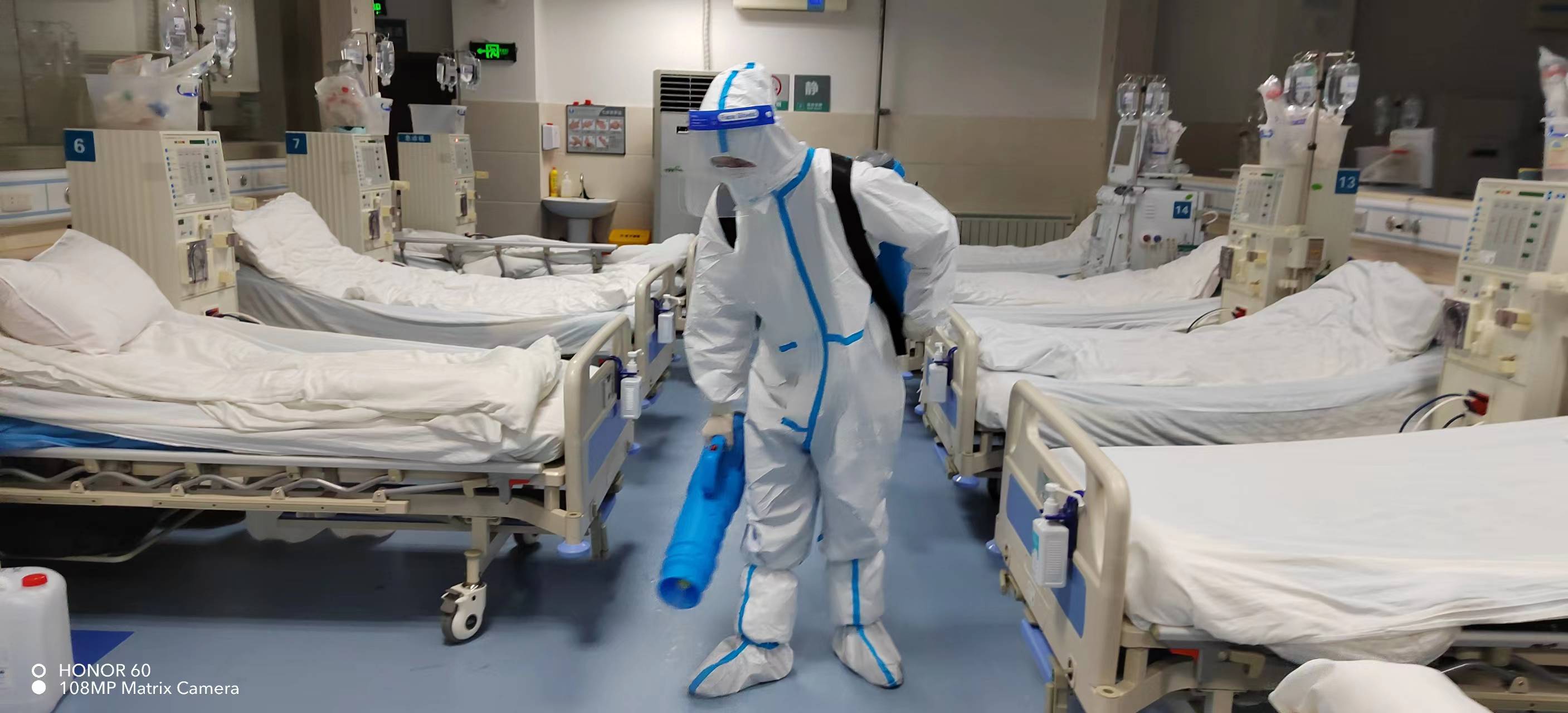 在抗疫日常工作期间,我司驻花溪区人民医院队员积极配合院方疫情防控工作。首先,每天对医院走廊、消防通道、物资库房、住院病区以及防疫车辆进行消杀,为医护人员和病区提供一个相对安全干净的环境。其次,维护核酸检测秩序确保采集工作有效开展。
