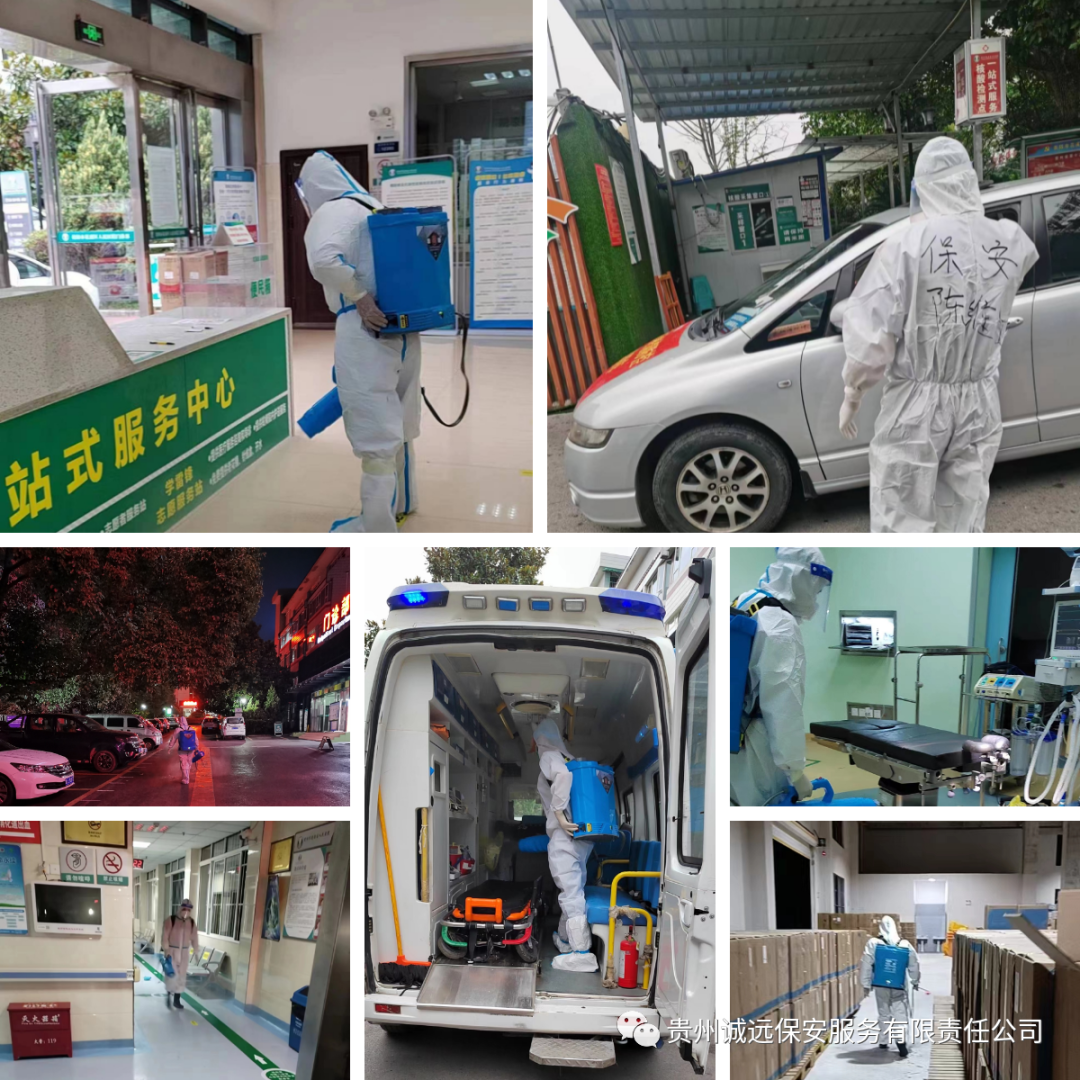 (我司驻花溪人民医院保安员对医院内部及防疫车辆进行消杀)